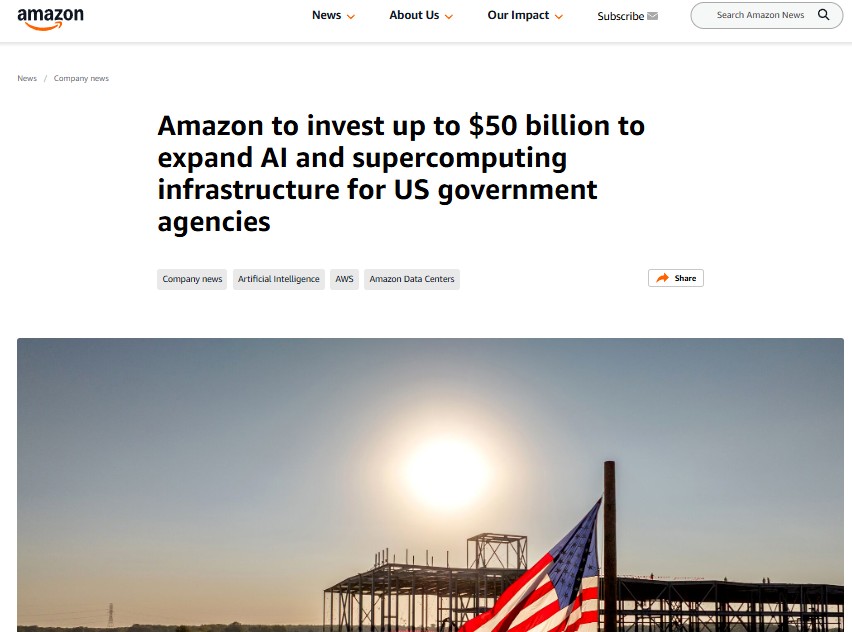 Amazon AWS plant Investitionen von bis zu 50 Milliarden US-Dollar für Erweiterung von Hochleistungs-KI- und Superc